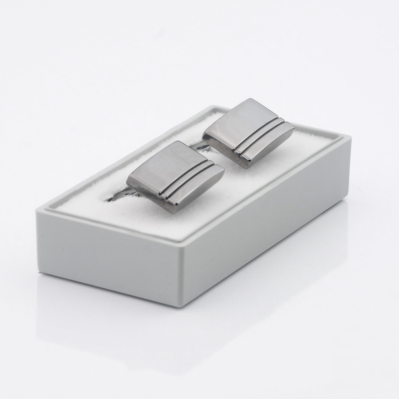 Boutons de Manchettes Argentés à Deux Lignes