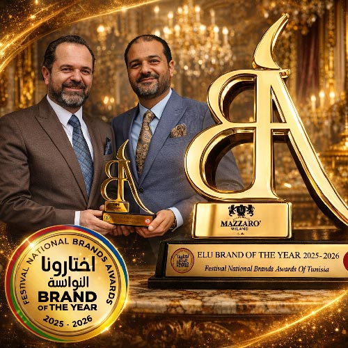Le 7 février 2026, Mazzaro Milano a reçu le prestigieux trophée “Élu Brand of the Year 2025–2026” lors du Festival National Brands Awards of Tunisia. Cette distinction récompense l’excellence, l’innovation et l’engagement continu de la marque dans l’univers du prêt-à-porter masculin. Elle reflète la confiance de nos clients, la passion de nos équipes et notre volonté constante d’atteindre le plus haut niveau de qualité et d’élégance.