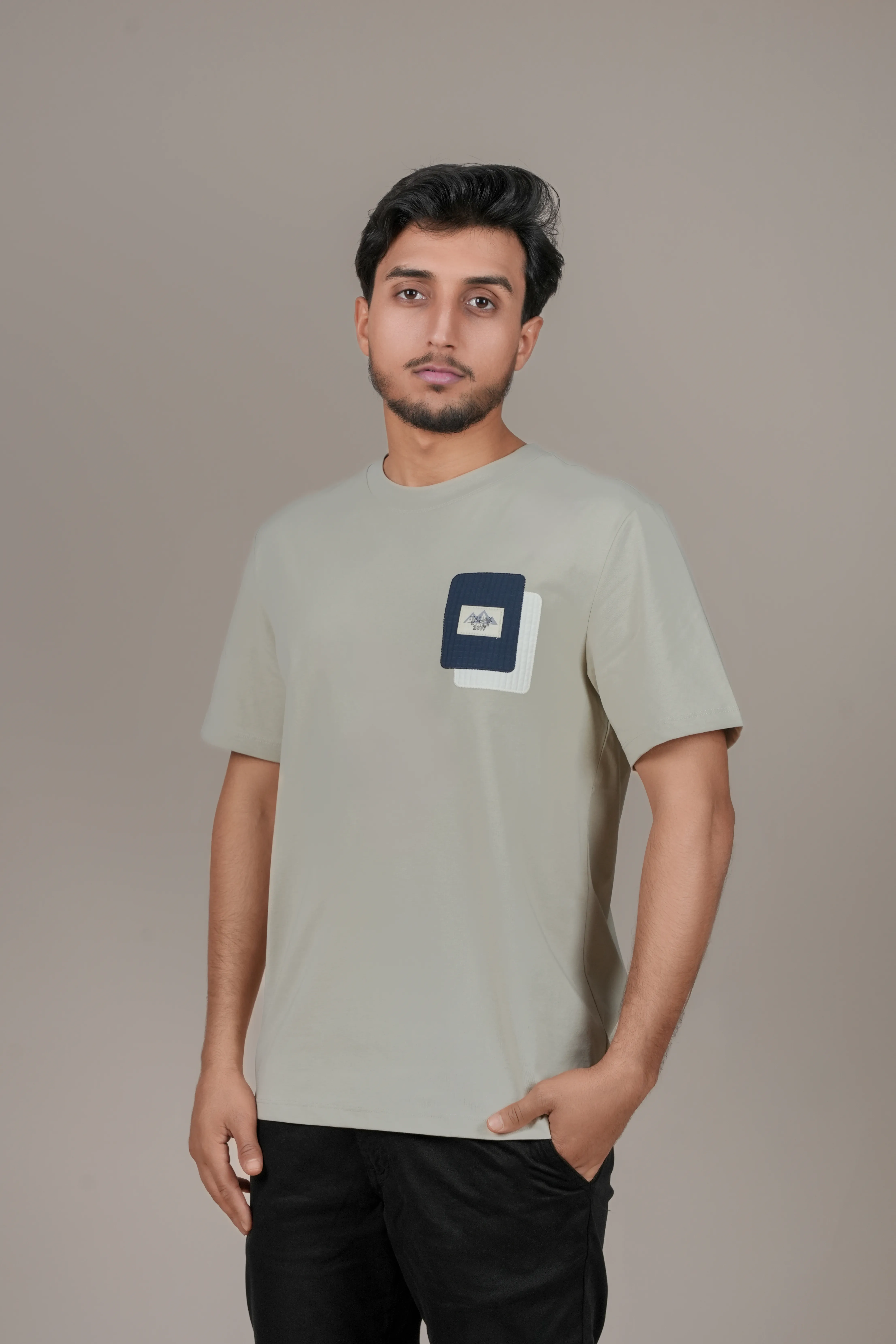 Alliant savoir-faire tunisien et design épuré, cette tenue pour homme se compose d’un t-shirt à la fois léger et résistant, complété par un pull en maille fine, idéal pour la mi-saison.